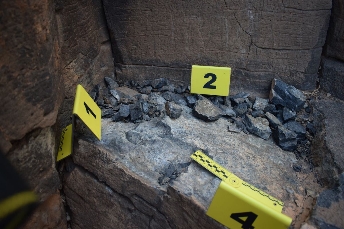 Tras recibir un aviso por parte de un ciudadano, gracias a su rápida actuación y colaboración, la Inspección del Servicio de Patrimonio Cultural se desplazó al lugar, acompañada por los agentes de Medio Ambiente. Una vez personados, se constató un expolio con sustracción de parte de la roca grabada, que constituye un delito contra el patrimonio histórico y cultural, al afectar a un bien protegido de gran valor arqueológico.