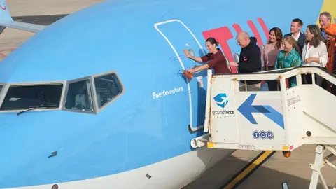 En este contexto la Presidenta del Cabildo, Lola García, y la Consejera de Turismo, Marlene Figueroa, han querido felicitar a TUI Fly por cumplir 50 años de vuelos ininterrumpidos conectando Fuerteventura con Alemania, Reino Unido, Países Bajos, Bélgica y otros mercados desde el año 1974 con un primer vuelo Hamburgo-Fuerteventura de Hapag Lloyd hasta el 2024 en el que se ha puesto el nombre de la Isla a una de las aeronaves esta semana, en reconocimiento a una historia de éxito que es también parte importante de la historia de la Isla.