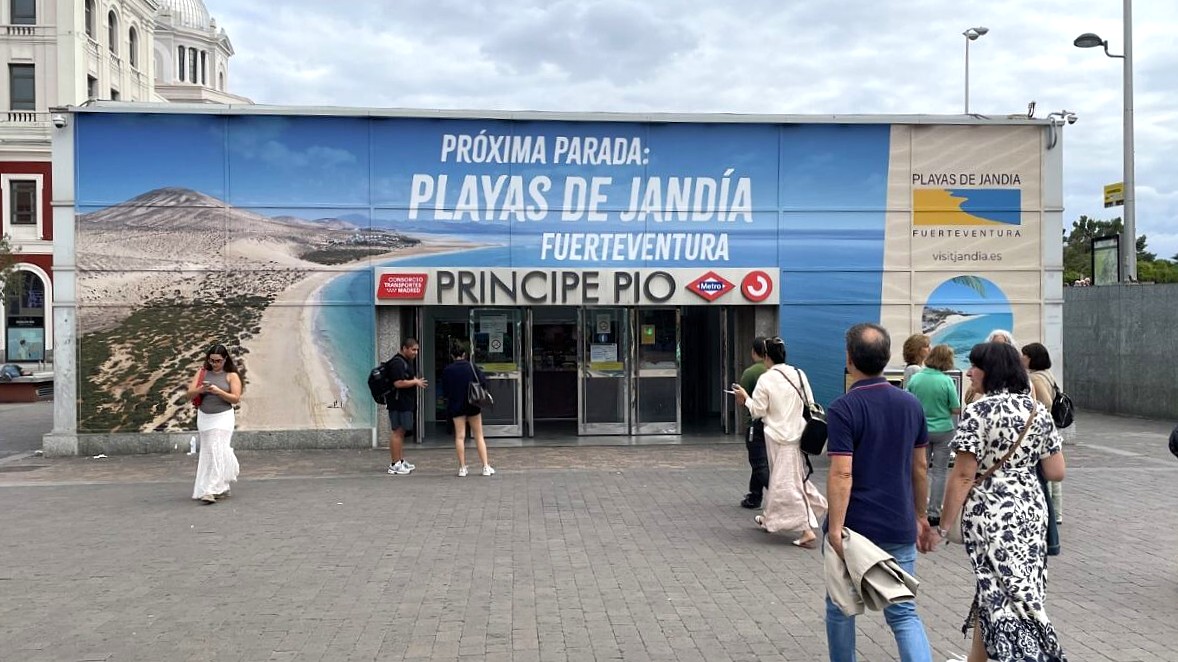 Entre el bullicio de gente y el rumor constante del tráfico urbano aparece una invitación a conocer el paraíso. La arena dorada y las aguas turquesas de Fuerteventura han recorrido las calles de Madrid, atrayendo las miradas de los transeúntes que se encontraron con las Playas de Jandía en el metro, guaguas y taxis.